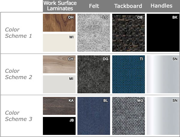 Please consider all factors influencing color perception when choosing the finishes. Natural or artificial light, time of day, and surrounding hues in your office environment, all can influence one's visual perception of color.